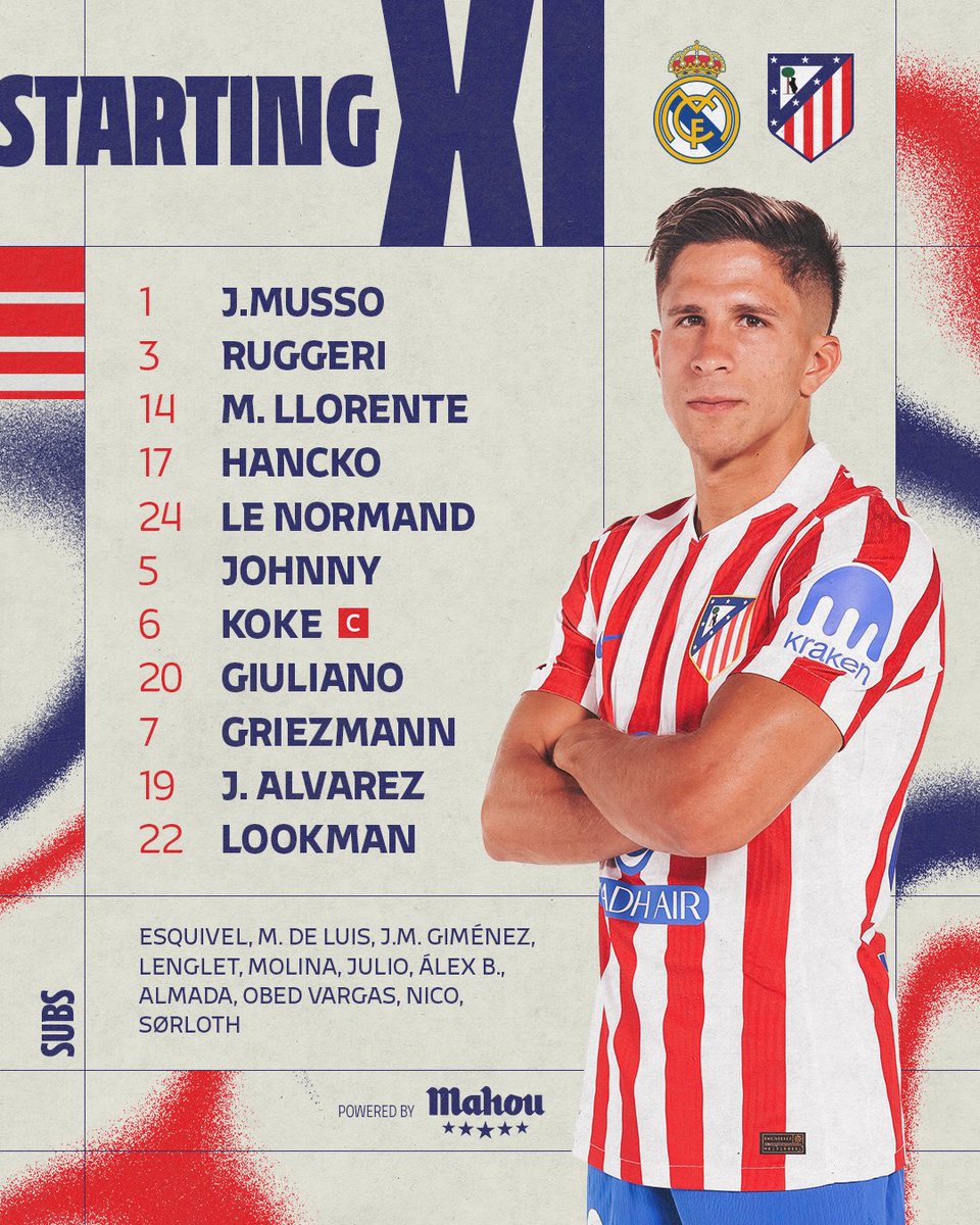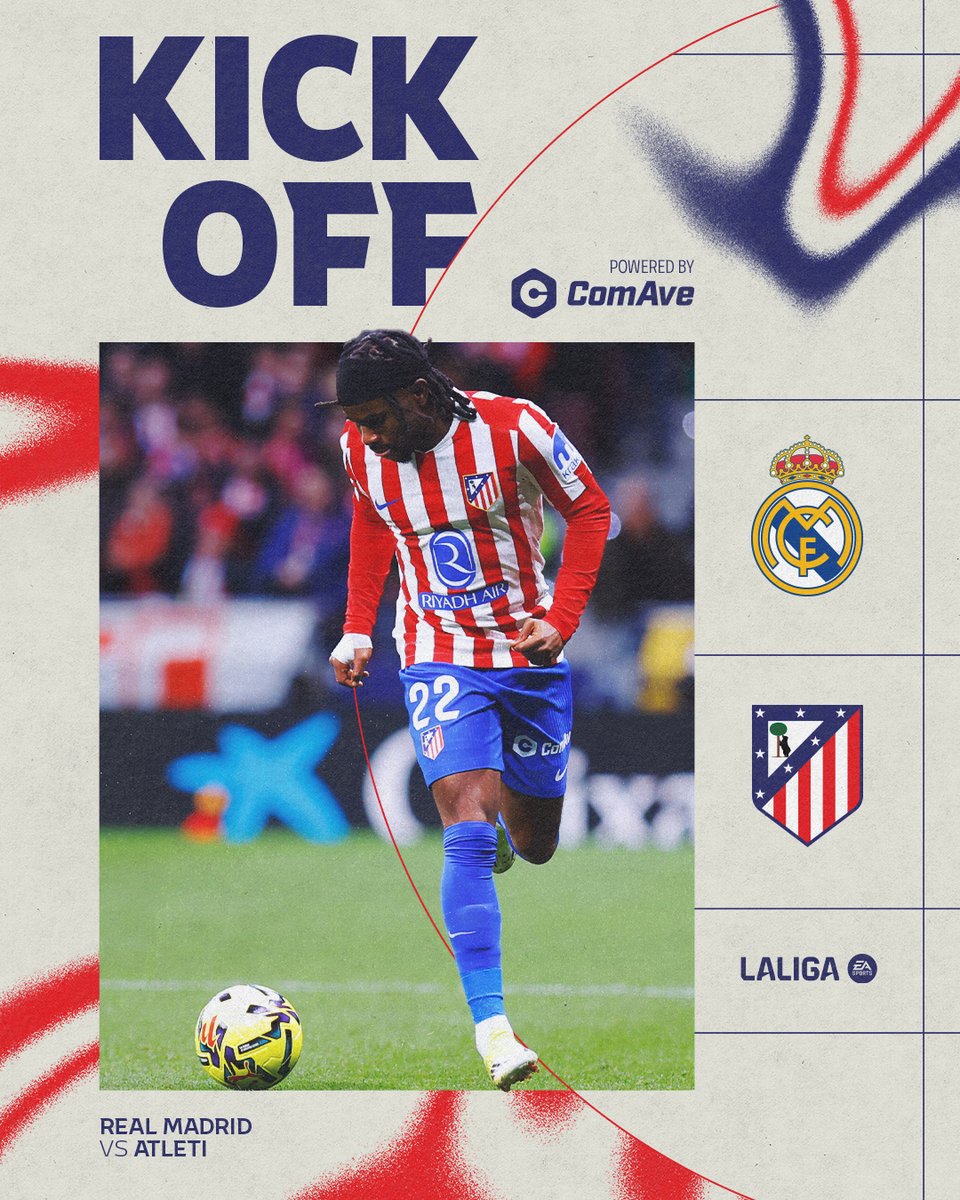 TWITTER Atlético de Madrid @atletienglish 🦅🦅🦅 #LaLigaHighlights https://t.co/RmIecX6Tkc Sun Mar 22 20:54:27 +0100 2026 Atlético de Madrid @atletienglish Up at the break 💪 https://t.co/BbEQMBuwOa Sun Mar 22 20:50:14 +0100 2026 Atlético de Madrid @atletienglish MOLAAAAAAA!!! 🦅🔥 0-1 ATLETI ❤️🤍 https://t.co/x6vOsgifv1 Sun Mar 22 20:37:01 +0100 2026 Atlético de Madrid @atletienglish ⏱️ 27' | Real Madrid 0-0 Atleti 🟨 Yellow card for Johnny. Sun Mar 22 20:30:48 +0100 2026 Atlético de Madrid @atletienglish So close from Marcos! #LaLigaHighlights https://t.co/weSW0h238p Sun Mar 22 20:28:22 +0100 2026 Atlético de Madrid @atletienglish ⏱️ 9' | Real Madrid 0-0 Atleti Marcos nearly opens the scoring on a beautiful counter attack! Sun Mar 22 20:12:54 +0100 2026 Atlético de Madrid @atletienglish ⏱️ 3' | Real Madrid 0-0 Atleti Big save by Juan Musso! 🧤 Sun Mar 22 20:06:06 +0100 2026 Atlético de Madrid @atletienglish VAMOS ATLETI, VAMOS ❤️🤍 https://t.co/tzEQoioREN Sun Mar 22 20:03:07 +0100 2026 Atlético de Madrid @atletienglish Final touches before kickoff 🔥 https://t.co/imOgtwDoLc Sun Mar 22 19:44:15 +0100 2026 Atlético de Madrid @atletienglish Checking in for the Derbi 👊 https://t.co/QMJxxgm8ec Sun Mar 22 19:11:42 +0100 2026 Atlético de Madrid @atletienglish Our XI 🛡️⚔️ https://t.co/4cXtQ0lyMU Sun Mar 22 18:42:36 +0100 2026