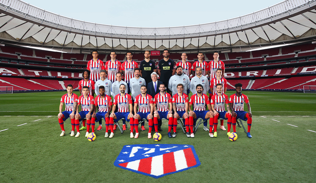 The Atleti squad posed with this year's first kit for the 2018/2019 season's official team photo at the Wanda Metropolitano.