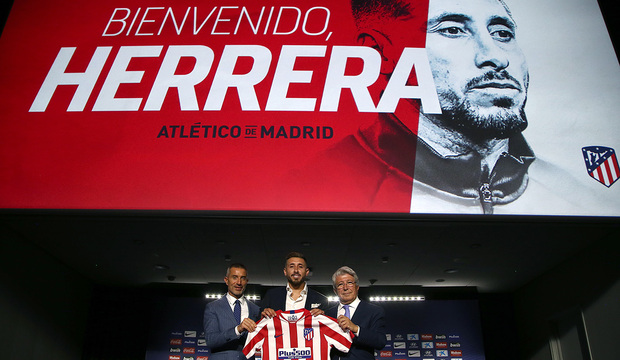 Héctor Herrera was unveiled as a new Atlético de Madrid player at the Wanda Metropolitano Auditorium on Friday. He was accompanied by club president Enrique Cerezo, sporting director Andrea Berta and legends Mendonça, ‘Alvarito’ and Miguel Ángel Ruiz, as well as members of the player's family.
