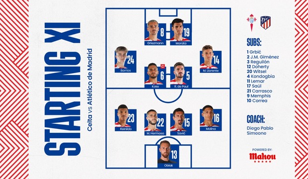 - Atlético de Madrid: Oblak, Molina, Savic, Hermoso, Reinildo, De Paul, Koke, Llorente, Barrios, Morata and Griezmann.