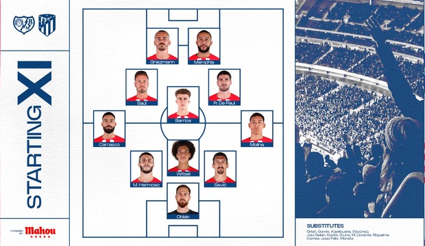 - Atlético de Madrid: Oblak, Molina, Savic, Witsel, Hermoso, Carrasco, Barrios, De Paul, Saúl, Memphis and Griezmann.