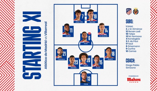 - Atlético de Madrid: Oblak, Molina, Savic, Witsel, Reinildo, Carrasco, Koke, Llorente, Lemar, Morata and João Félix.