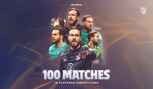 Oblak, 100 appearances for Atlético de Madrid in Europe