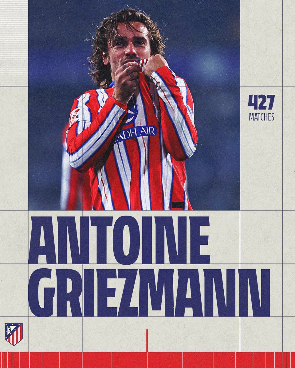 Grizi equals Saúl as the eighth most-capped player in the club's history ❤️🤍 https://t.co/doxLa7tzRC