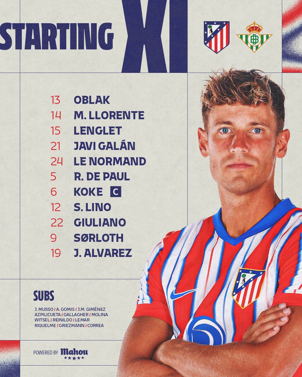 - 80' | Atleti 3️⃣-1️⃣ Betis Two more substitutions: IN: Molina & Correa OUT: Lino & Giuliano