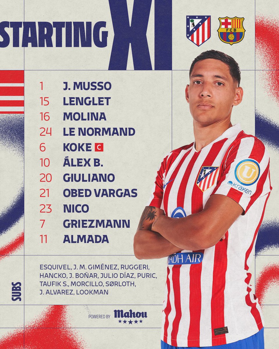 ⏱️ 61' | Atleti 1-1 Barça 🔄 Giménez, Sørloth, and Morcillo replace Giuliano, Álex Baena, and Griezmann