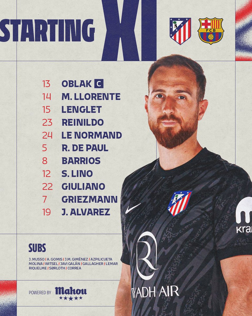 - 60' | Atleti 1️⃣-0️⃣ FC Barcelona 🔄 Double change: IN: Gallagher & Sørloth OUT: Lino & Julián
