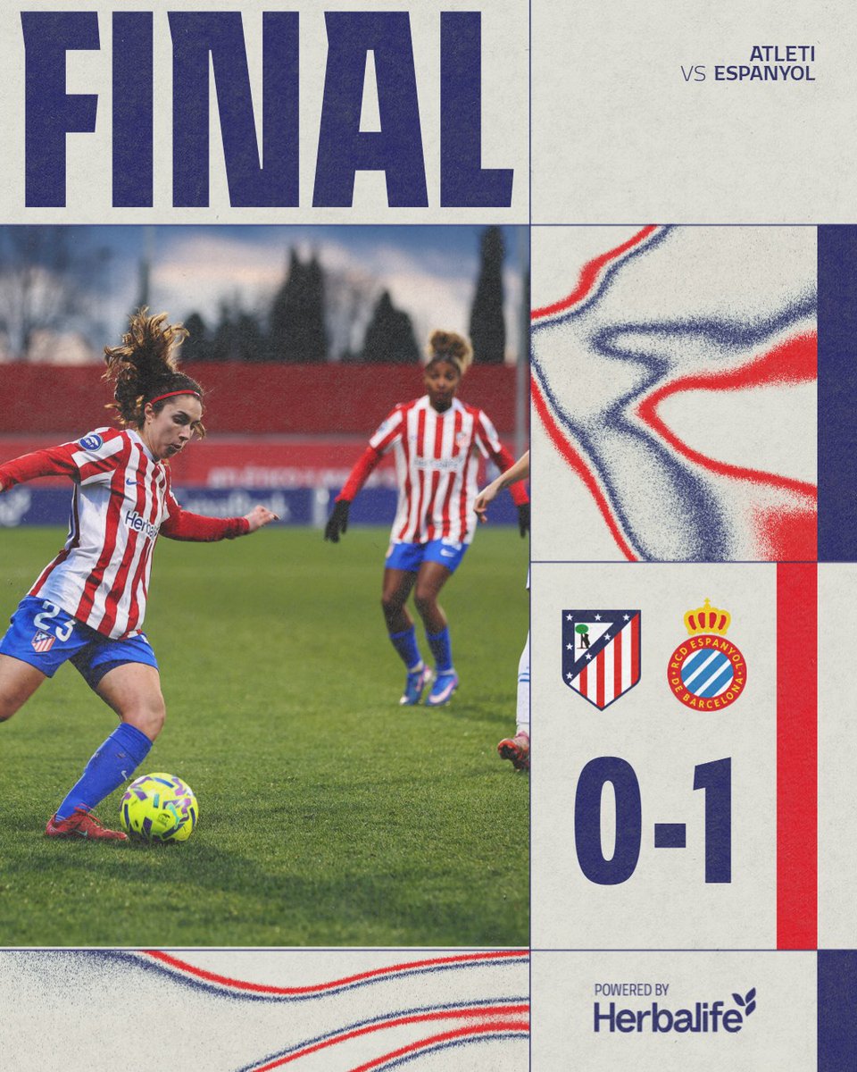 TWITTER Atlético de Madrid @AtletiFemenino Concluye el partido. https://t.co/AQbL99OwLL Sat Jan 17 17:28:05 +0100 2026 Atlético de Madrid @AtletiFemenino 90’+8’ | Atleti 0-1 Espanyol Cabezazo de Sheila que atrapó Salvador. Sat Jan 17 17:27:46 +0100 2026
