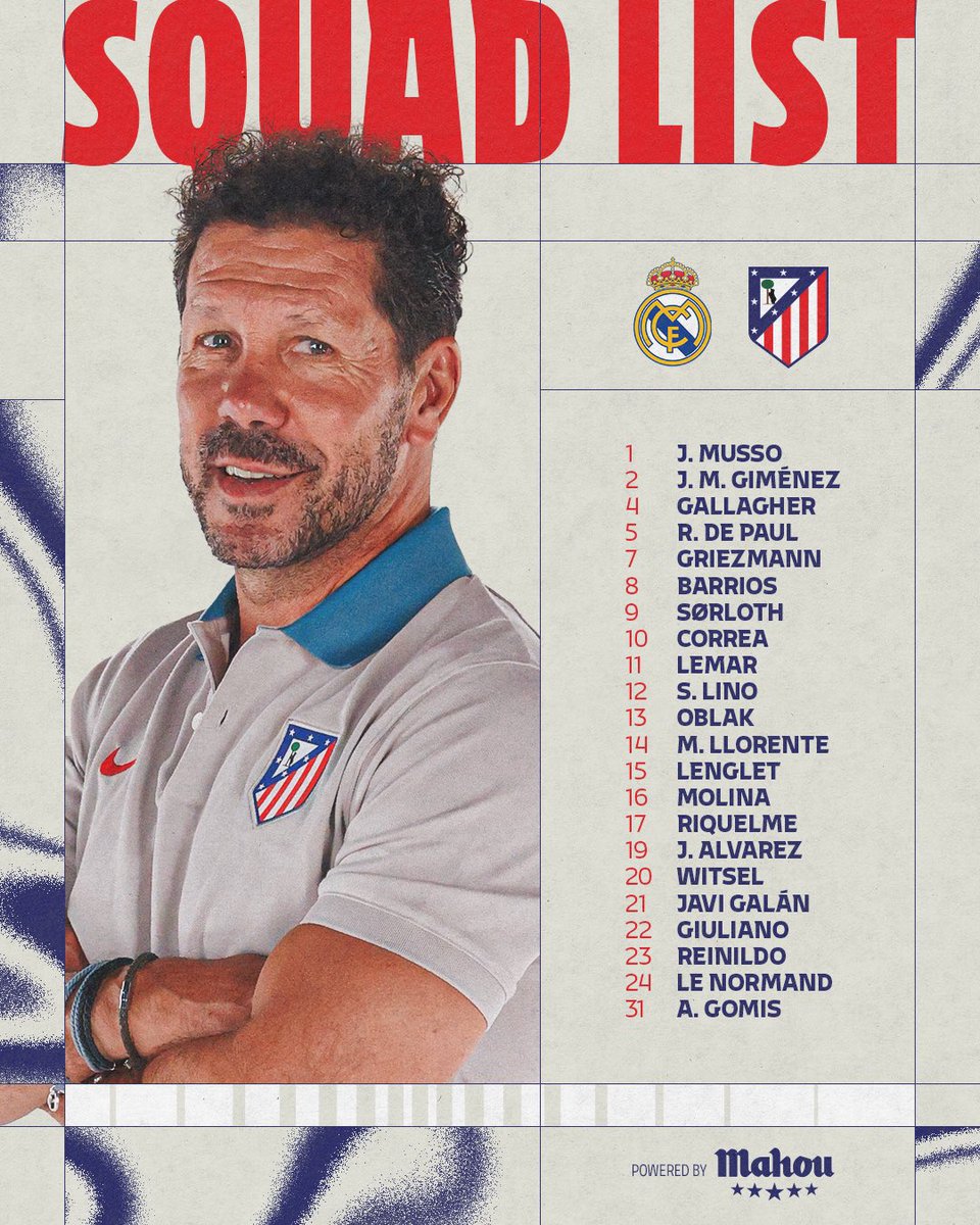 - 75' | Real Madrid 2️⃣-1️⃣ Atleti IN: Sørloth & Correa OUT: Barrios & De Paul