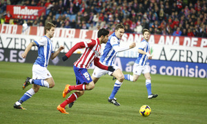El Atlético supera a la Real Sociedad con un contundente 4-0 que le aúpa a la primera posición de la Liga. Villa, Diego Costa, Miranda y Diego Ribas, que volvía a casa, fueron los goleadores de una noche que sirvió a la familia rojiblanca para dar el último adiós a Luis Aragonés.