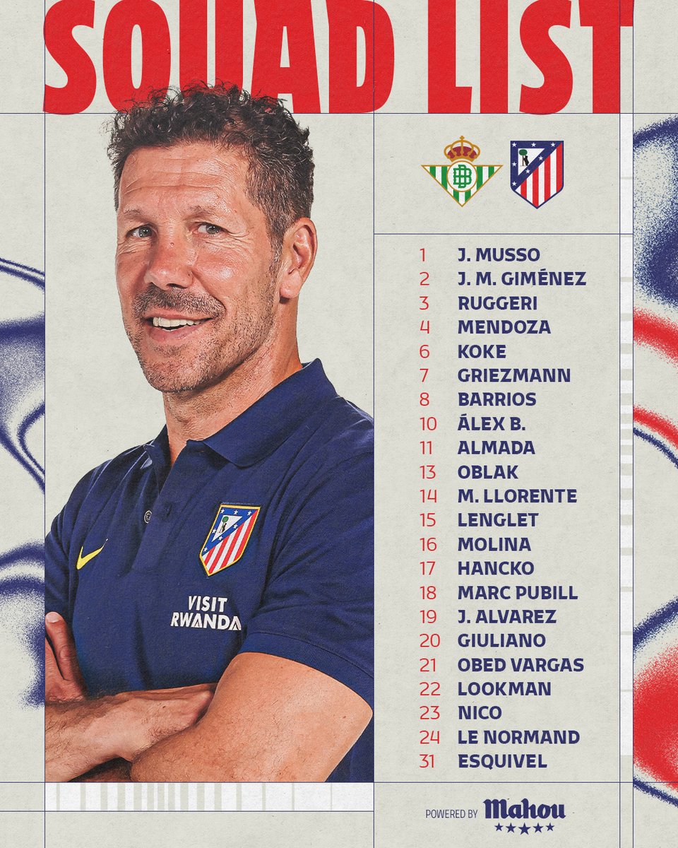 Our squad for today's match against Real Betis 📋 https://t.co/21xgUfz2I9