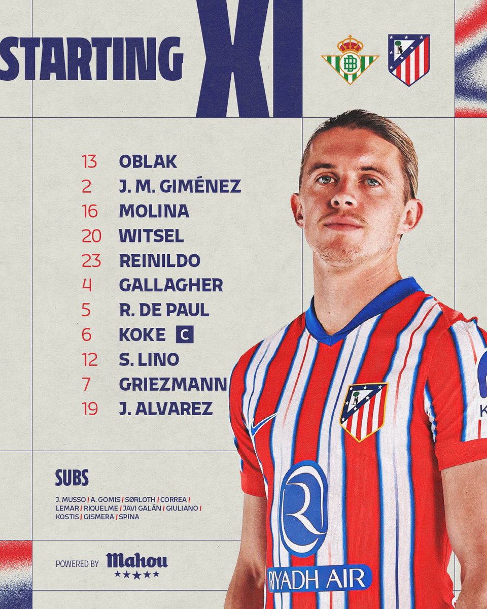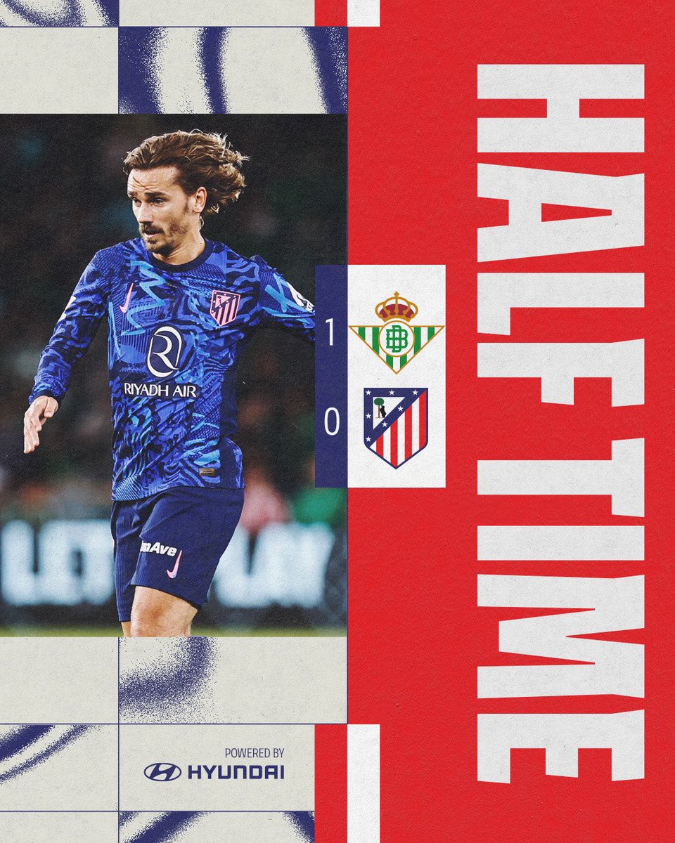 - 46' | Betis 1️⃣-0️⃣ Atleti Double change: ➡️ Javi Galán & Sørloth ⬅️ Reinildo & Gallagher