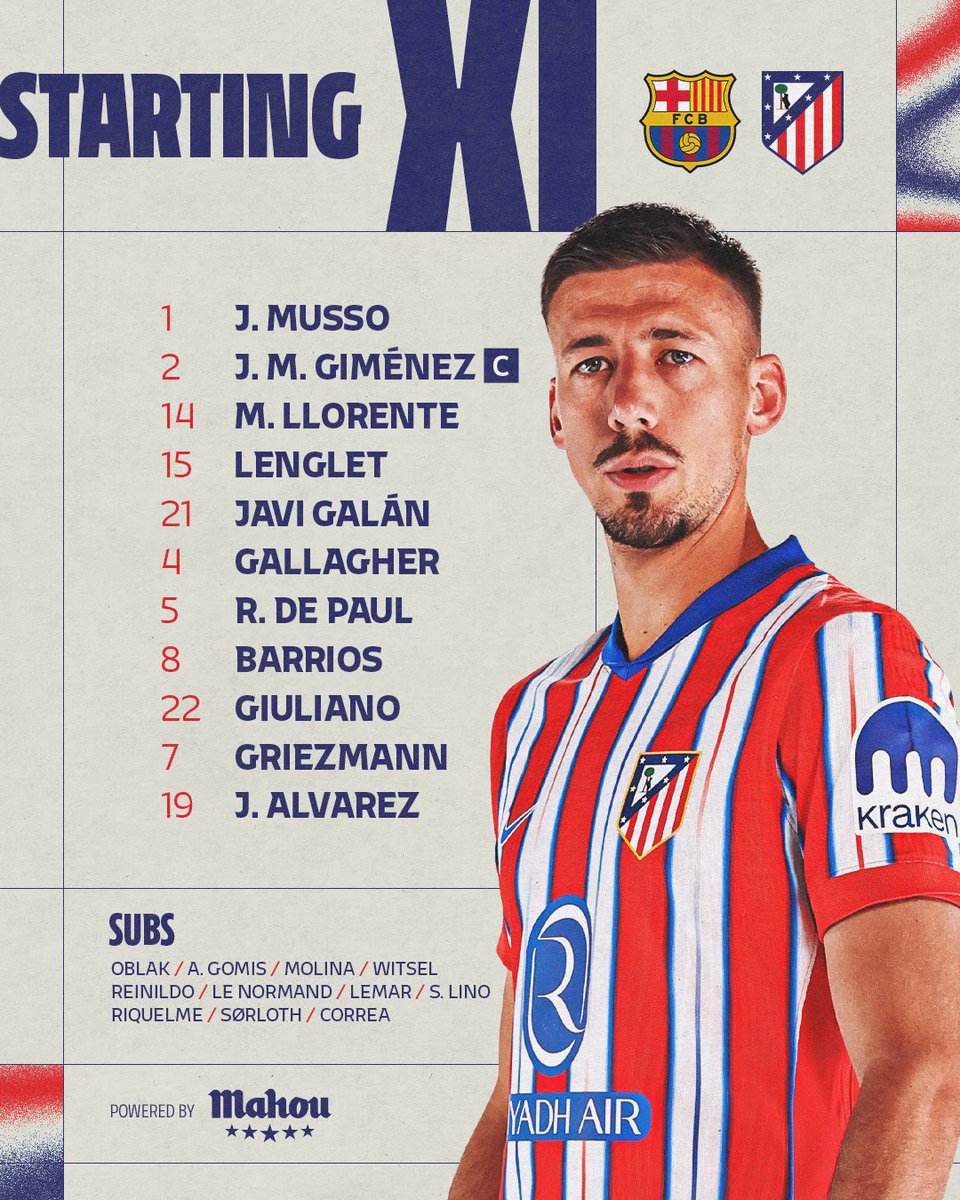 - 68' | FC Barcelona 3️⃣-2️⃣ Atleti 🔄 Double change: IN: Correa & Sørloth OUT: De Paul & Griezmann
