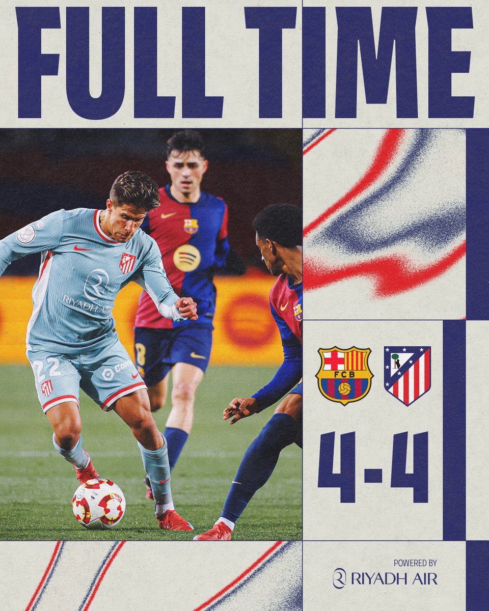 - 87' | FC Barcelona 4️⃣-3️⃣ Atleti 🟨 Barrios booked.