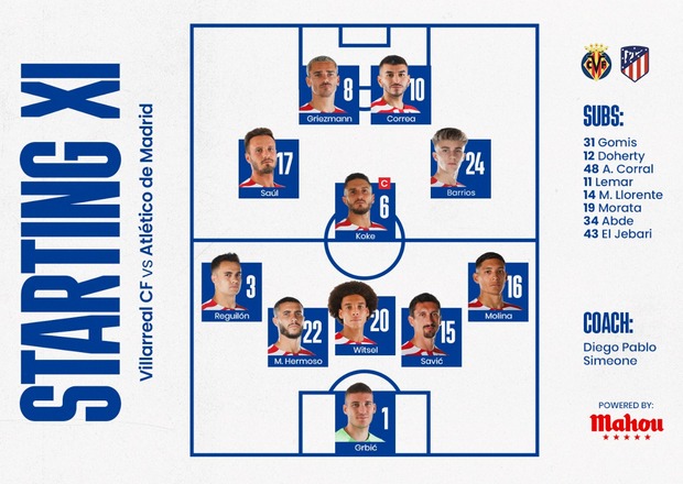 Villarreal-Atleti Squad List June 4, 2023 - 10:00 Take a look at who’s available for LaLiga game against Villarreal.