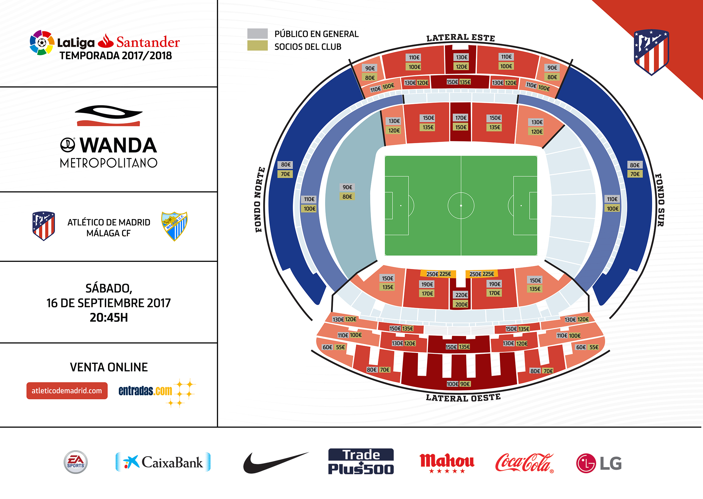 Price including VAT. Tickets purchased are non refundable and exchanges are not allowed. Atlético de Madrid is not liable for tickets purchased by unofficial channels. Members have no discounts when buying seats in these areas of the stadium. |
